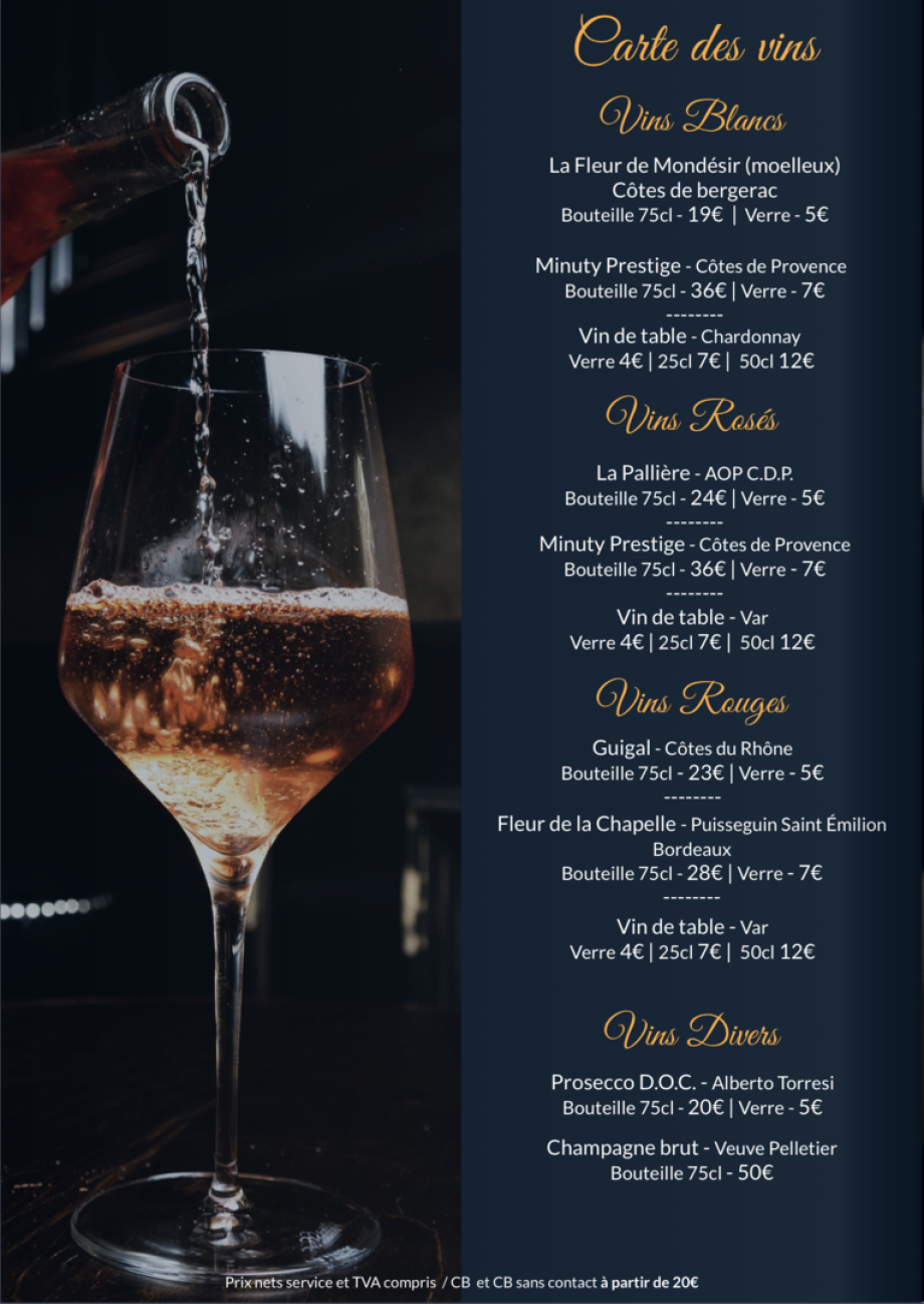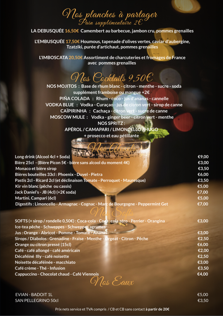 Prix nets services et TVA comprise. Viandes en provenance de France ou Europe.